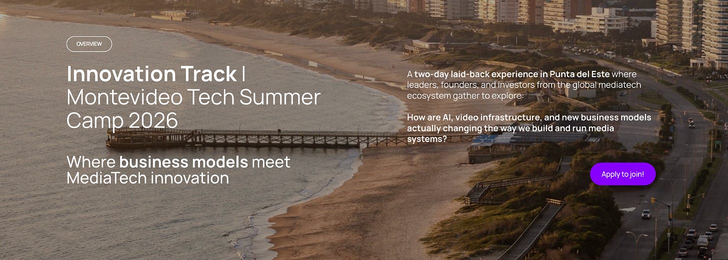 This January, for two days in Punta del Este, JP Saibene and I will host a working session with a curated group of people who are already deep in this work. The goal is to map what’s real, identify what’s emerging, and capture the patterns that matter. At the end of it, we’ll publish a short working paper in February called Designing the Next Layer of MediaTech.